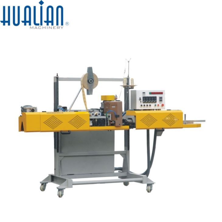 Máquina empacadora automática de costura y sellado de una línea serie FBK, apta para empacar papel Kraft de una sola capa, papel Kraft multicapa, bolsa laminada de papel/plástico. Podría terminar automáticamente los procesos de limpieza de polvo, recorte, costura, encuadernación del borde, corte, sellado térmico, cierre a presión y conteo, etc.