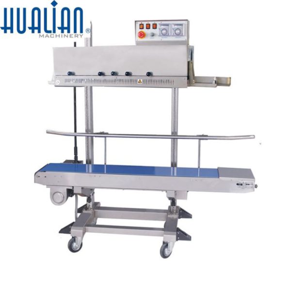 ● El cabezal de sellado y la mesa transportadora pueden subir o bajar libremente mediante la rueda del mango según el tamaño de la bolsa.